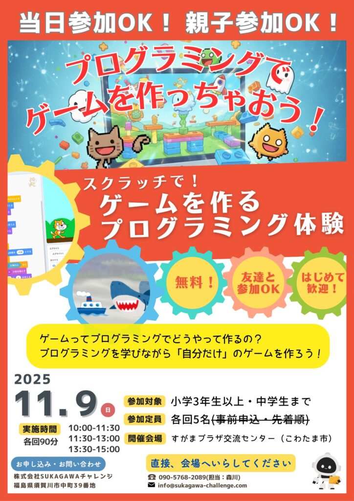 11月9日(日)に、玉川村で子どもたちを対象としたプログラミング体験イベントを開催しました。当日は親子参加も含めて11人が参加してくれました!